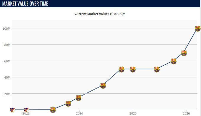 九游游戏-本赛季费尔明身价3次上涨,从5000万欧升到了1亿欧